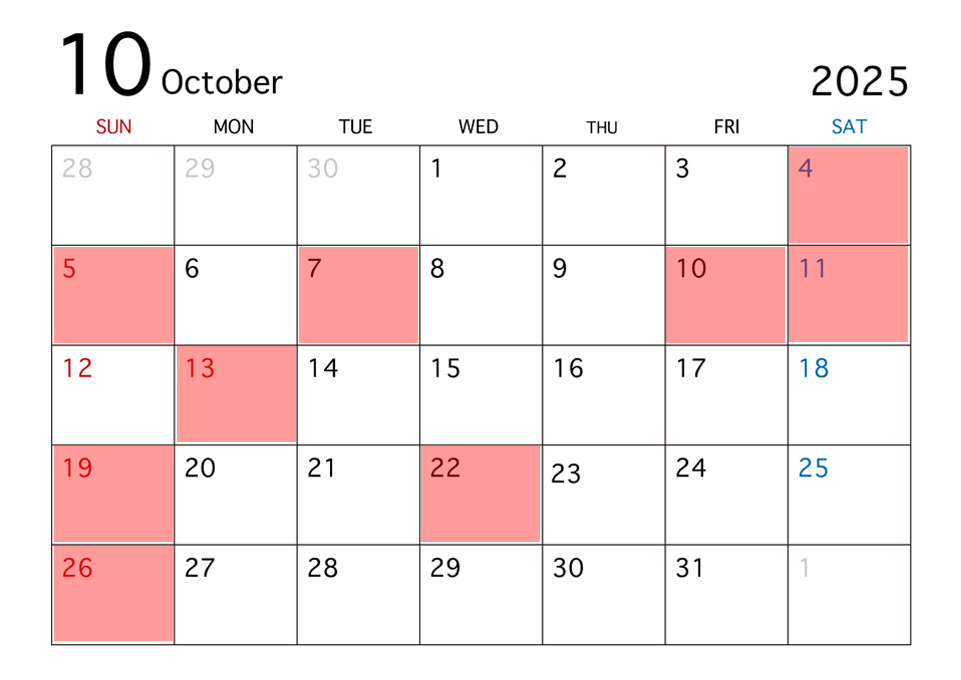 2025年10月のスケジュールです。
