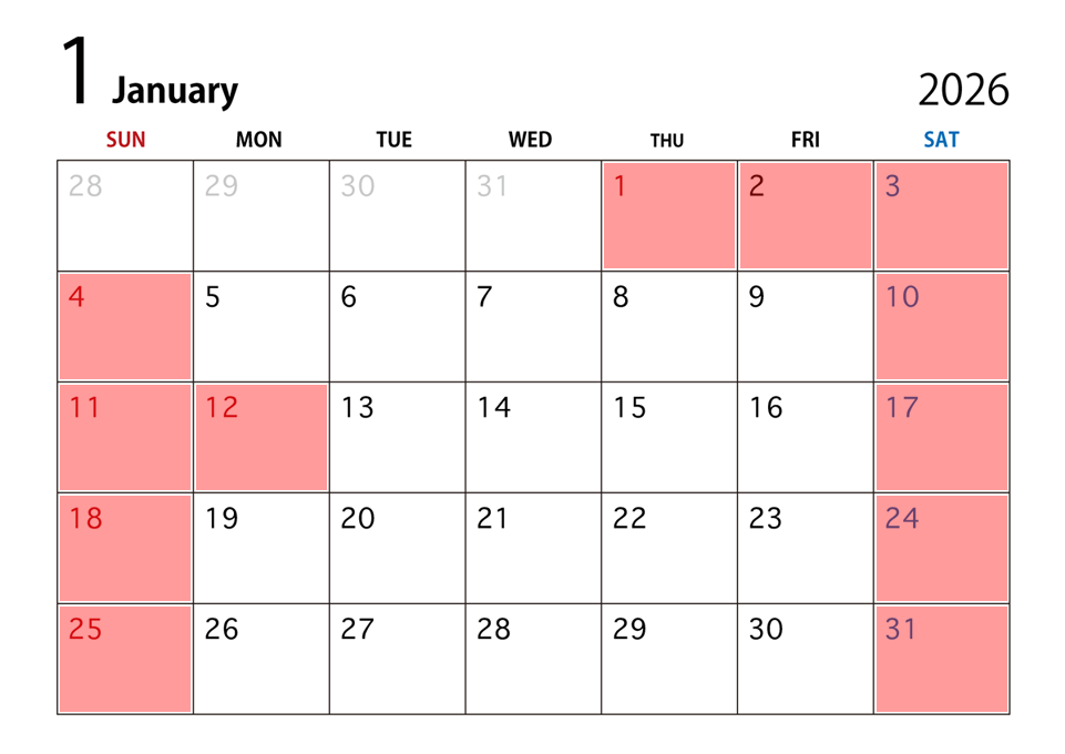 2026年1月のスケジュールです。